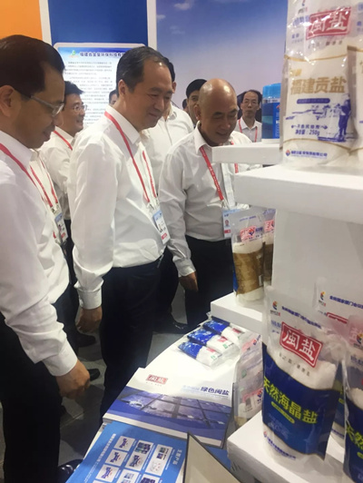 展會(huì)期間,省委常委、常務(wù)副省長(zhǎng)張志南,副省長(zhǎng)鄭新聰,省國(guó)資委黨委書記、主任邵玉龍,寧德市委書記郭錫文等領(lǐng)導(dǎo)蒞臨福建輕紡展臺(tái)視察參觀,福建輕紡黃文定總經(jīng)理、省鹽業(yè)集團(tuán)公司徐宗明董事長(zhǎng)向各位領(lǐng)導(dǎo)介紹了企業(yè)改革創(chuàng)新發(fā)展所取得的成效,并著重介紹了省鹽業(yè)集團(tuán)公司新推出的“閩鹽”牌系列產(chǎn)品。