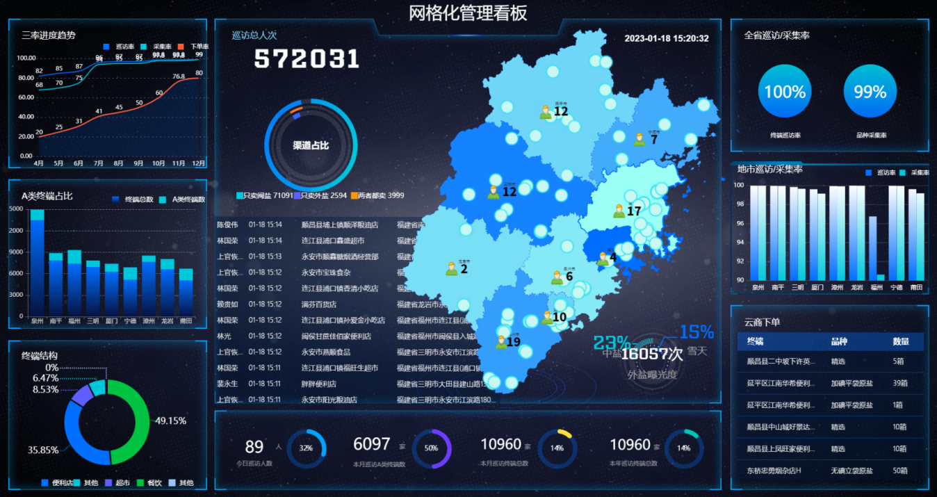 (“福鹽云商”大數(shù)據(jù)平臺,可實時監(jiān)控網(wǎng)格化管理相關(guān)數(shù)據(jù))