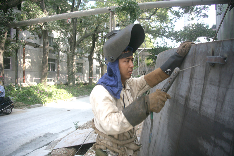 5月19日15時(shí),在福建省青山紙業(yè)股份有限公司堿回收一廠,遠(yuǎn)遠(yuǎn)就能看見十多米高的圓形白液槽,暗紅的罐體已經(jīng)基本成型,焊花刺眼。張克澤正在罐體四五米高的位置上,身著厚重的焊工服,臉上是頭戴式焊帽,腰部拴著安全帶,披肩帽包裹著頭部和脖子。在工友們的......