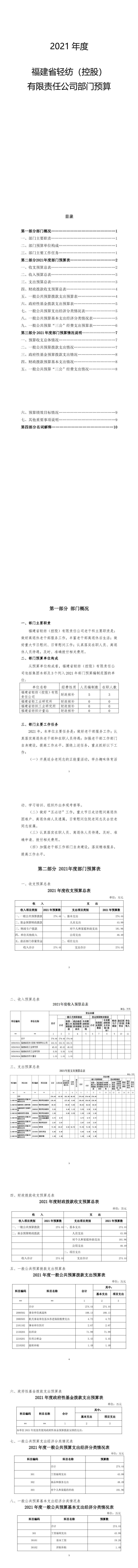 2021年度福建省輕紡(控股) 有限責(zé)任公司部門預(yù)算
