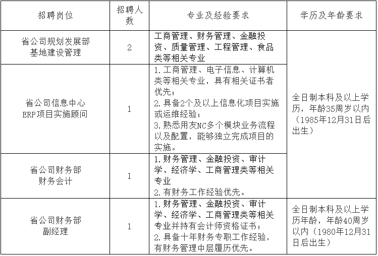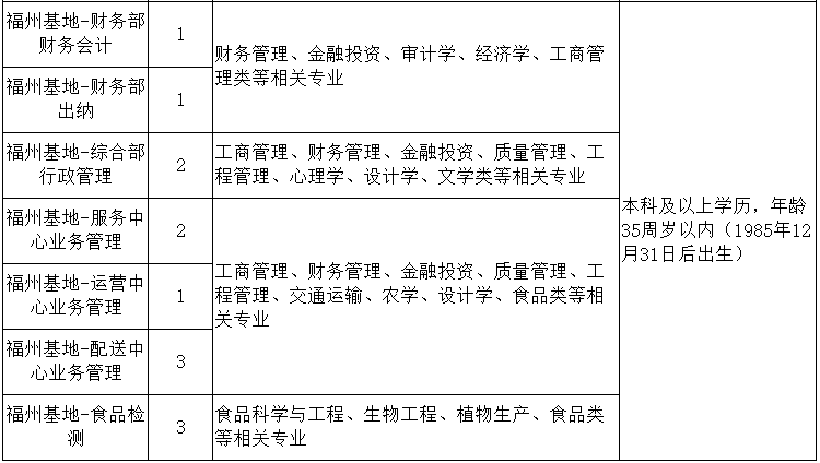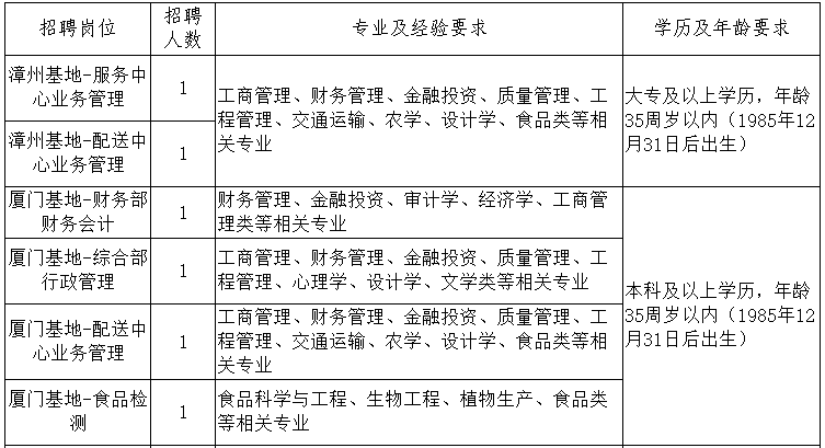 福建海峽軍民融合產(chǎn)業(yè)發(fā)展有限公司是專門從事副食品籌措供應(yīng)保障的國有企業(yè),公司成立于2020年3月9日,注冊資本2億元人民幣,隸屬于福建省輕紡(控股)有限責(zé)任公司。地址:福建省福州市倉山區(qū)金林路35號互聯(lián)網(wǎng)小鎮(zhèn)2號樓3層。公司主營:農(nóng)副產(chǎn)品、水產(chǎn)品、糧油及制品、食品飲料、調(diào)味品、日化用品、酒及其他副食品等的批發(fā)零售;預(yù)包裝食品、散裝食品、乳制品的批發(fā)零售;園區(qū)管理化服務(wù);單位后勤管理服務(wù)。為滿足業(yè)務(wù)發(fā)展的需要,公司擬面向社會公開招聘37名工作人員,現(xiàn)將有關(guān)招聘事項公告如下: