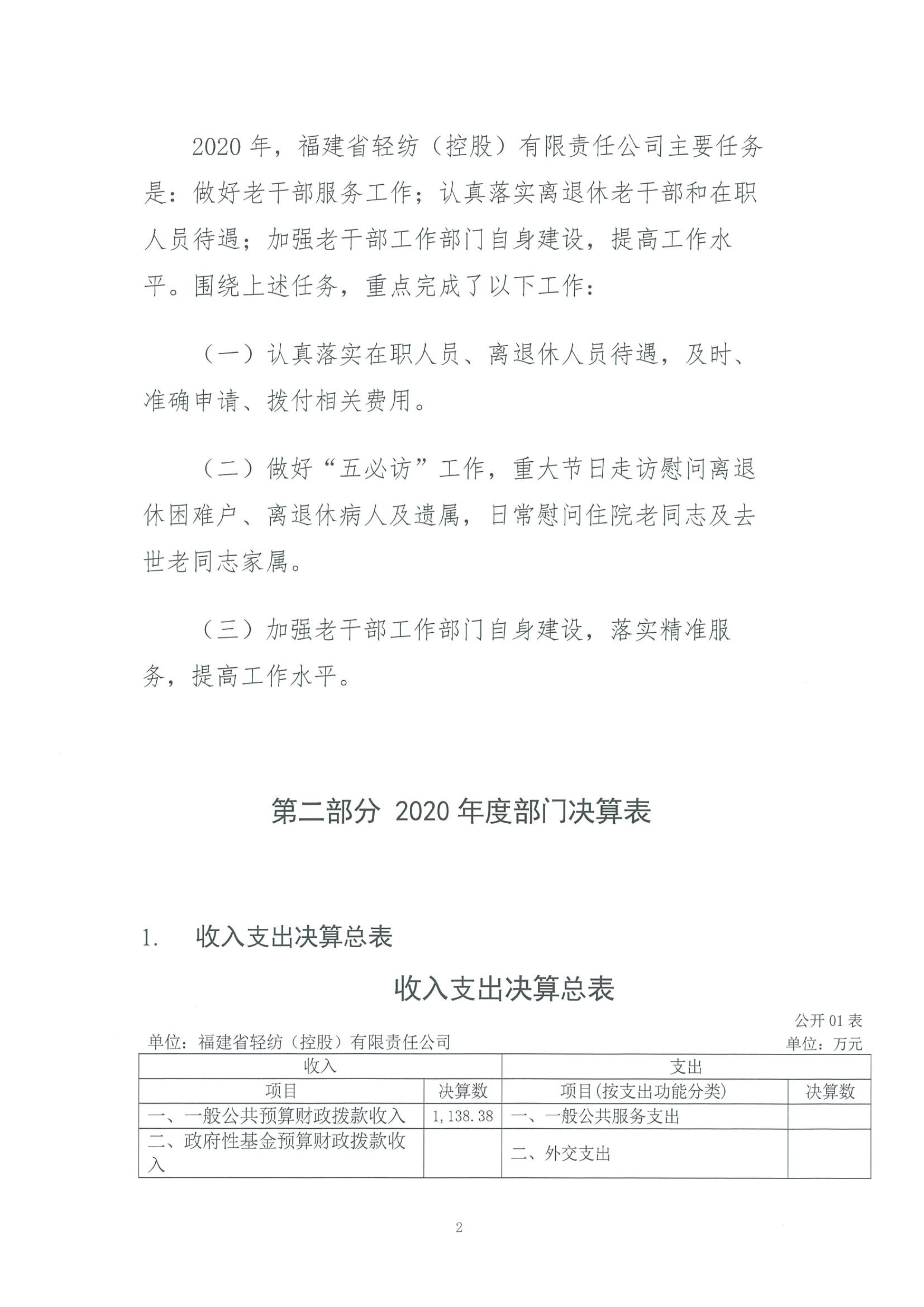 福建省輕紡(控股)有限責(zé)任公司2020年度部門決算