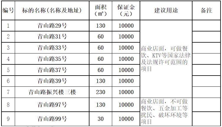 3.本次招租按分項確定承租人(即表中每個編號的標的物確定一個承租人)。