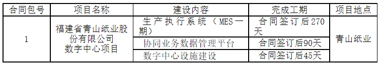 福建省青山紙業(yè)股份有限公司數(shù)字中心項目進(jìn)行公開招標(biāo)。現(xiàn)歡迎合格投標(biāo)人對該招標(biāo)項目進(jìn)行密封投標(biāo)。