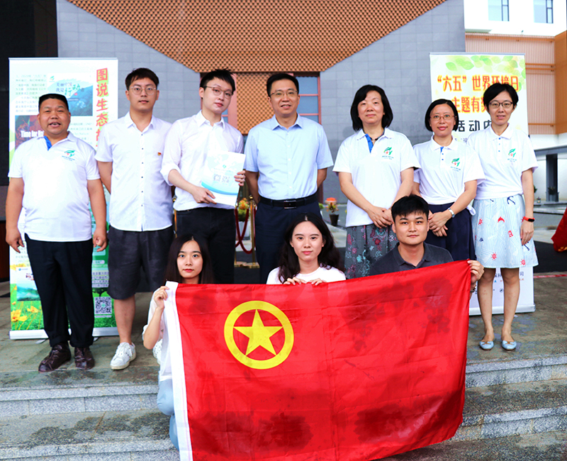 活動結(jié)束后,省生態(tài)環(huán)境廳總工程師鄭彧、宣教中心主任姜永紅一行與金皇環(huán)保青年代表親切合影。
